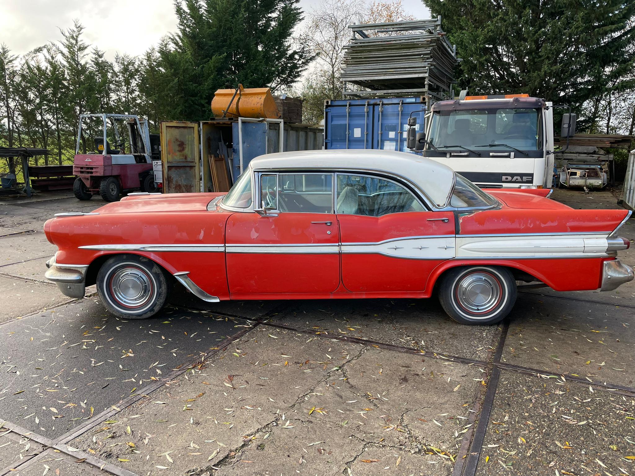 Deze Pontiac Chieftain van het bouwjaar 1957 heeft na alle jaren een beetje liefde nodig. Motor loopt en de auto rijdt en remt, zit laswerk aan de bodem en heeft een paar plekjes aan de buitenkant. Leuke opvallende auto, die belastingvrij is en voorzien is van een LPG installatie. De auto is door zijn leeftijd vrijgesteld van de APK plicht.